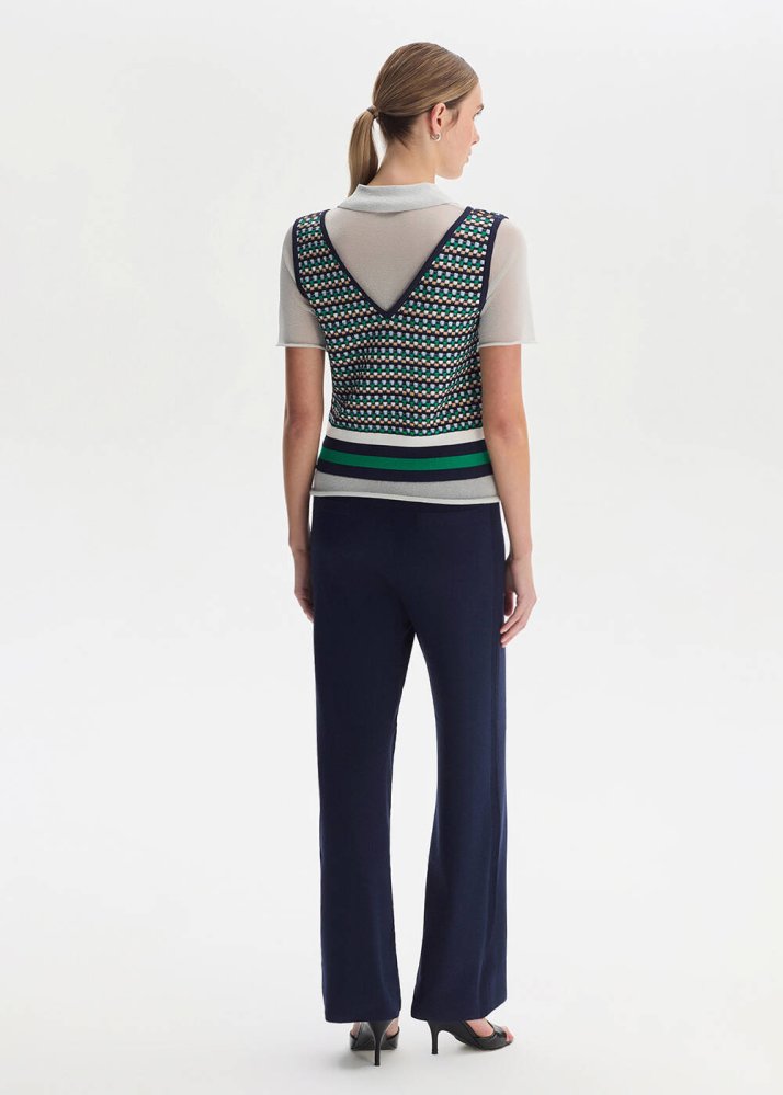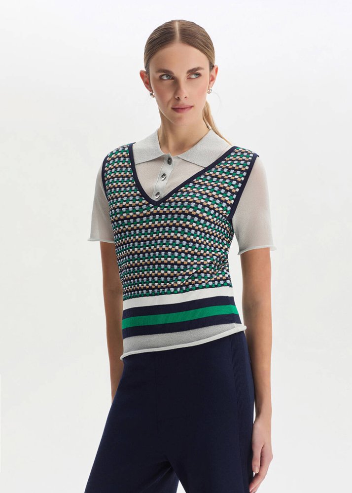 GEOMETRIC PATTERNED WHITE KNIT TOP