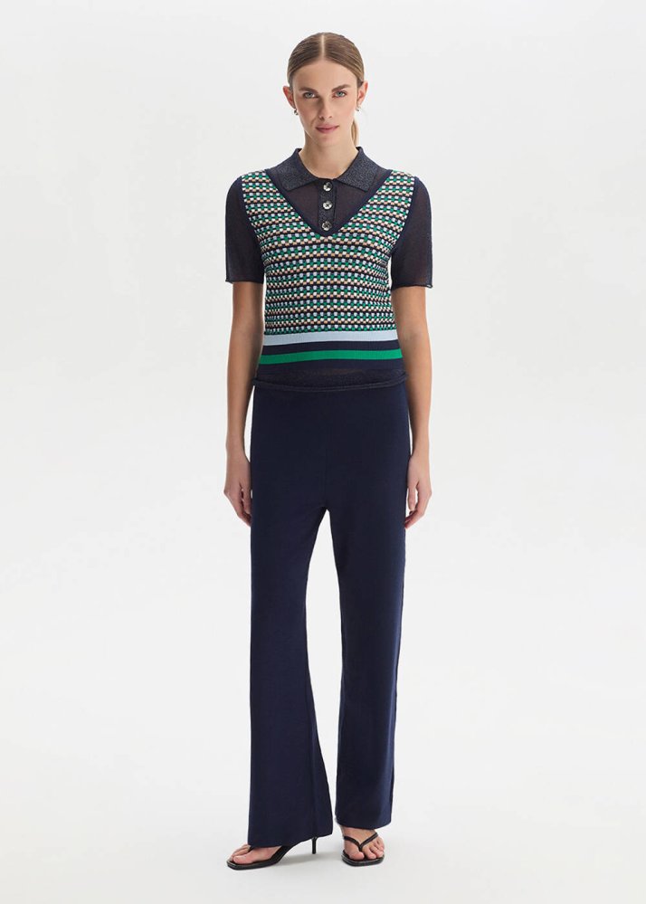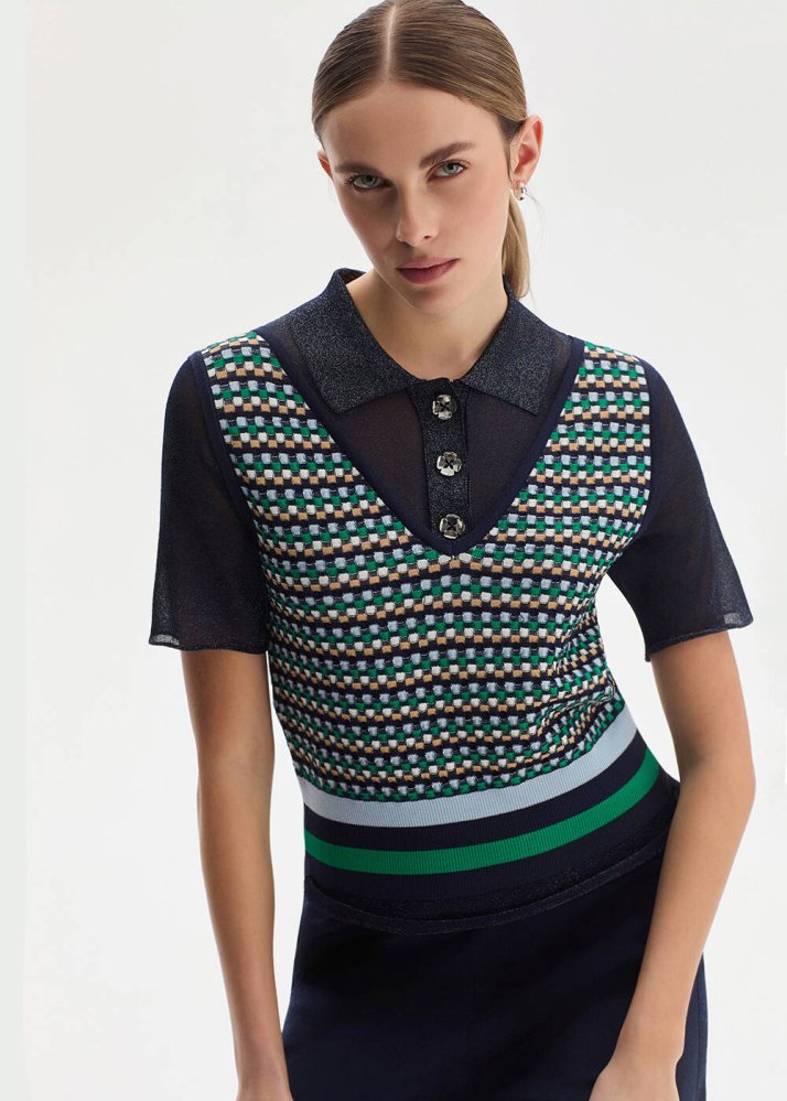 Cher Geometrik Desenli Triko Üst, grafik dokusu ve kontrast renkleriyle güçlü bir stil sunar. Polo yaka ve kısa kol kesimi klasik çizgiyi modern bir yorumla buluştururken, ince ışıltılı iplikler tasarıma derinlik katar. Yüksek bel parçalarla kolayca uyum sağlayan, dikkat çekici ve dengeli bir tamamlayıcıdır.