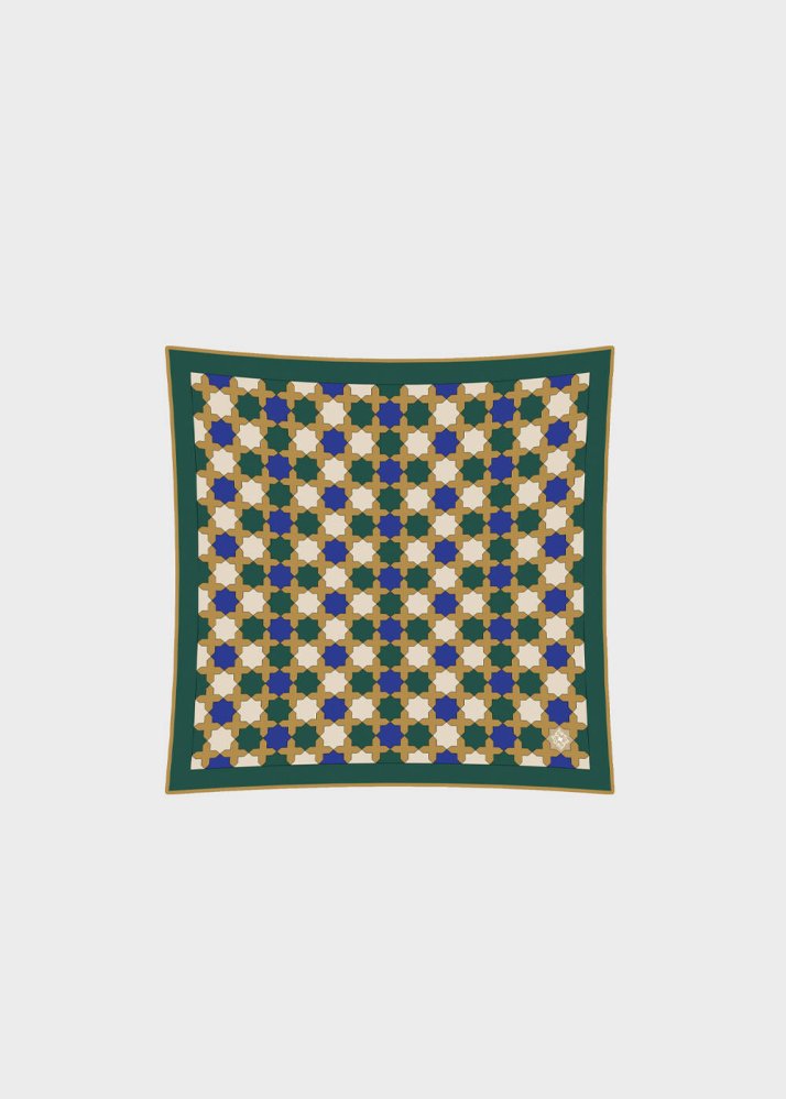 Geometrik Desenli Saf İpek Fular - Pherahs