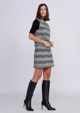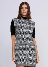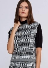 Goemetrik kaz ayağı desenlli ile business kombinlerinize Knitss farkı katacak triko yelek ile tanışın. Siyah-beyaz triko yelek modeli, taş düğme ve dekoratif cep detayına sahiptir. İtalyan ipliklerinden modern, çevreye duyarlı kadınlar için özel üretilen triko yeleği, takımı olan Gayo Skirt ile kombinleyebileceğiniz gibi koleksiyonda yer alan diğer parçalarla da rahatlıkla kombinleyebilirsiniz.