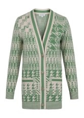 Geometrik kaz ayağı deseni ve yeşil-krem rengi ile stilinize hareket katacak Knitss triko hırka ile tanışın. Taş düğme detayına sahip triko hırka modeli, birinci sınıf İtalyan ipliklerinden çevreye duyarlı kadınlara özel üretilmiştir. Takımı olan Gayo Skirt ile birlikte giyebileceğiniz triko hırka, koleksiyonda yer alan diğer modeller ile kolaylıkla kombinleyebilirsiniz.