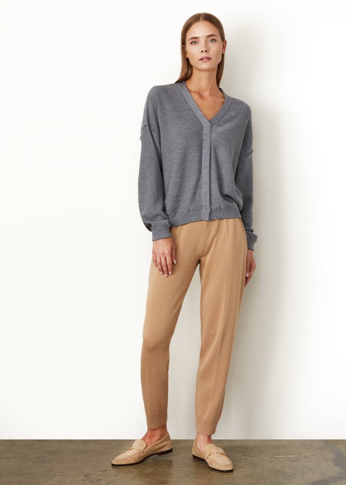 Gizli Düğme Saf İtalyan Merino Yün Gri Hırka