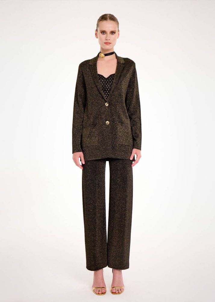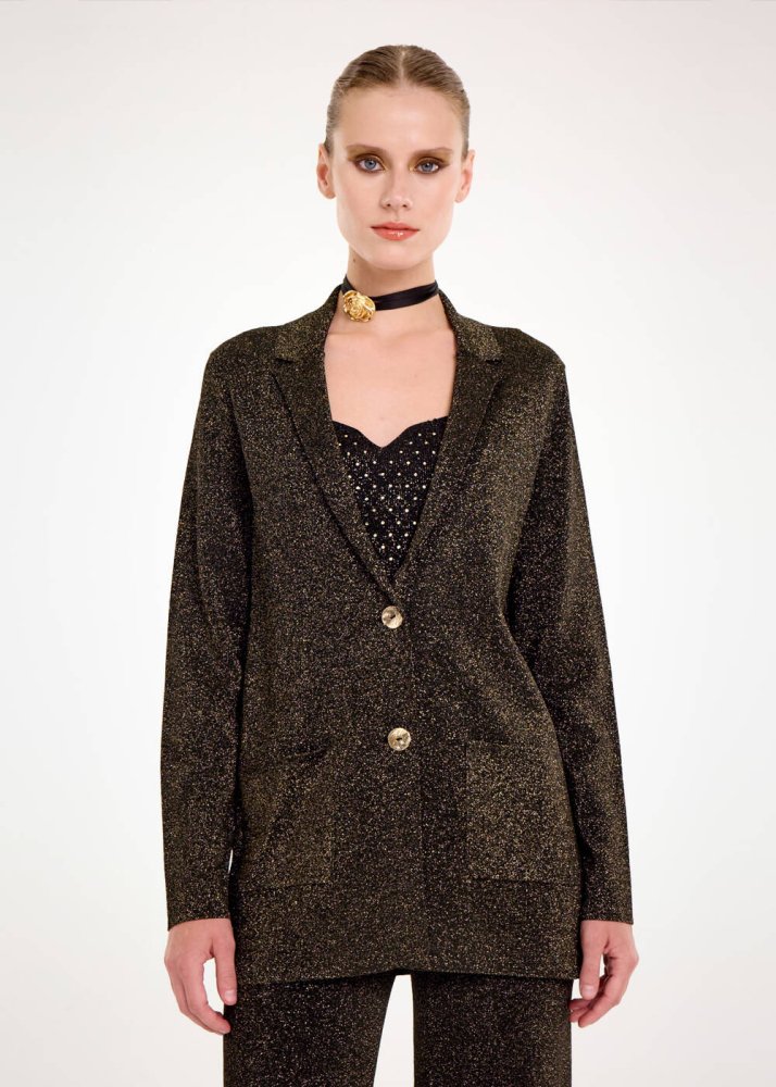Gold Lurex Triko Blazer Ceket