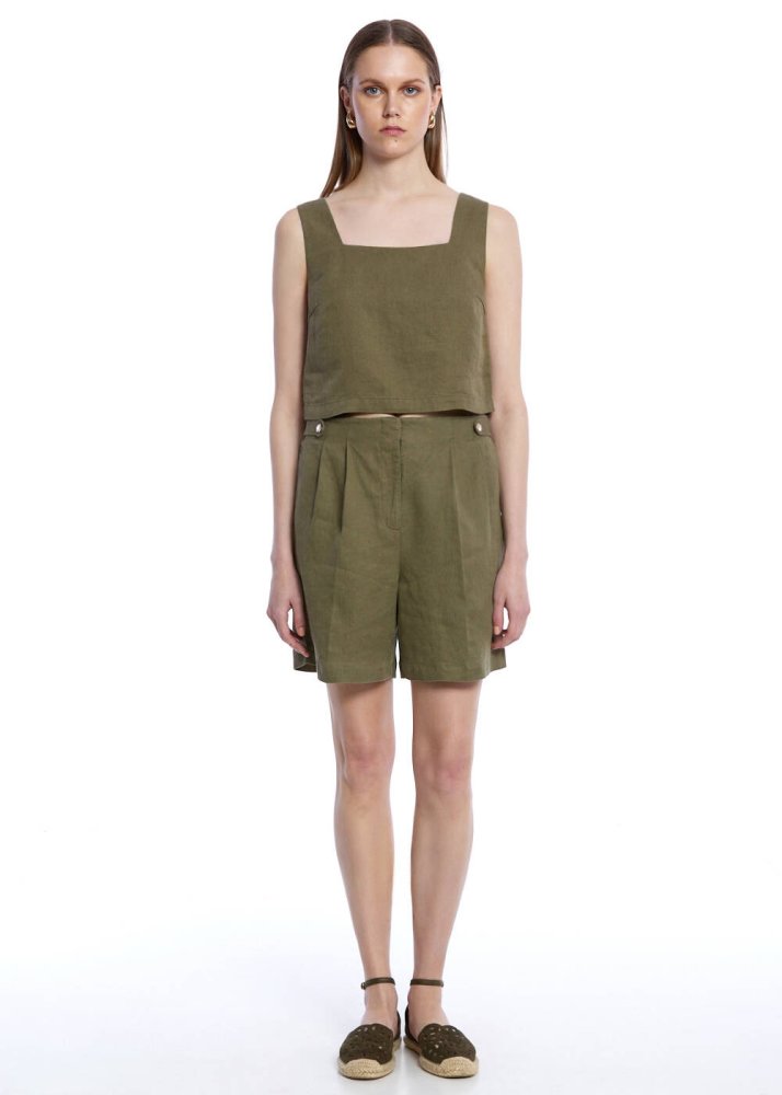 Doğanın huzurunu yansıtan haki keten şort, yaz stilinize doğal bir dokunuş katıyor. %100 ketenin hafif ve serin tutan dokusuyla sıcak günlerin vazgeçilmezi. Süs fileto cep detayları zarif bir incelik sunarken, bele oturan kesimi ve logolu çıtçıtları ile markanın mzasını taşıyor. Her ortamda stilinizi zahmetsizce tamamlayın.