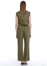 Doğal keten dokusunun ferahlığıyla öne çıkan haki keten yelek, sade ama iddialı tarzıyla her ortamda dikkatleri üzerinize çekmenizi sağlar. V yaka ve çift düğme detayı modern bir dokunuş katarken, kolsuz tasarımı sayesinde hem tek başına hem de haki keten pantolon veya haki keten şortla kolayca kombinlenebilir. Her mevsim kullanabileceğiniz haki saf keten yelek, gardırobunuzun uzun ömürlü ve stil sahibi bir parçası olacak.