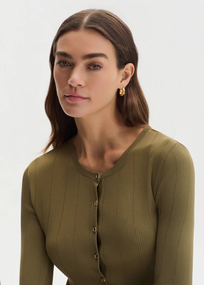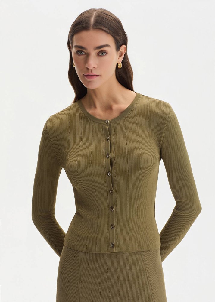 Haki Slım Fıt Triko Hırka