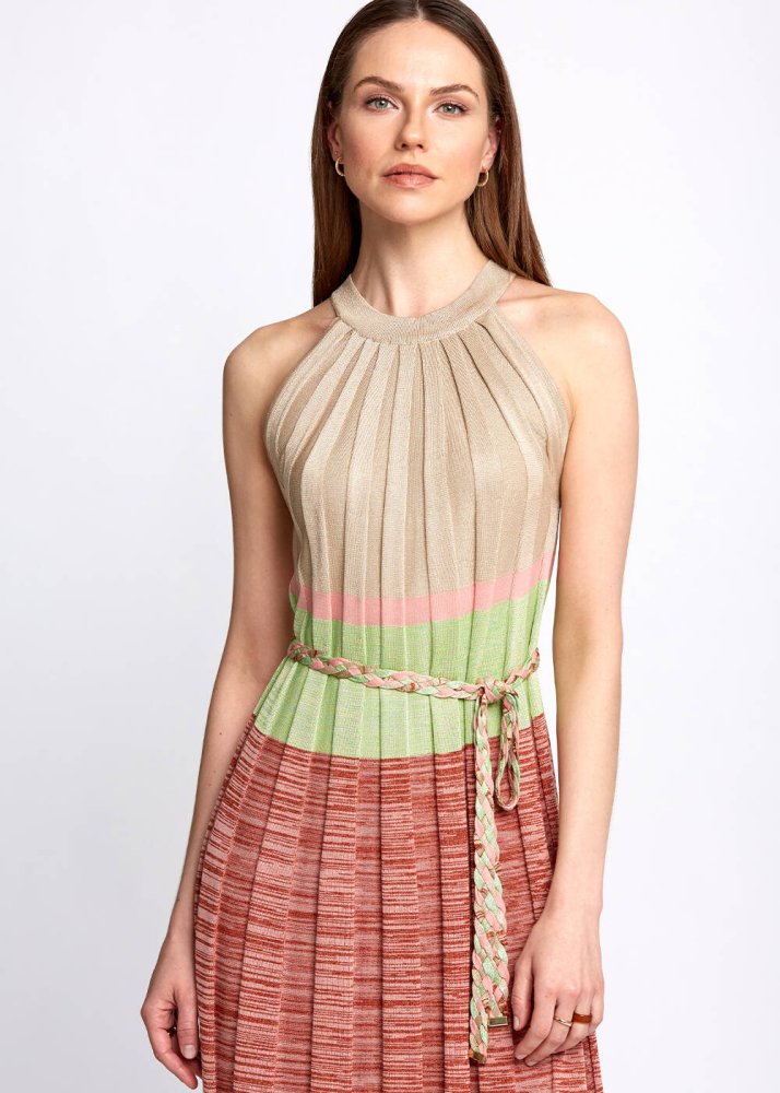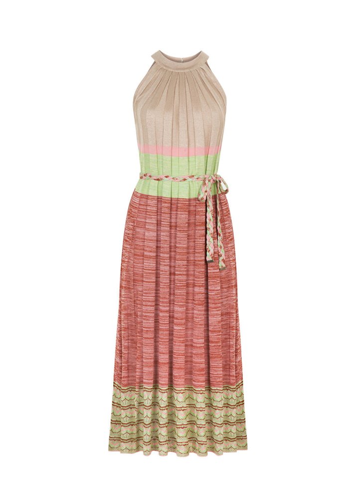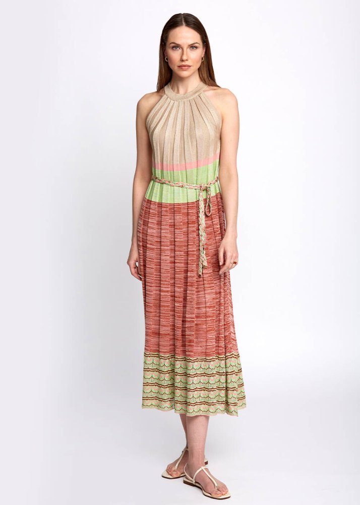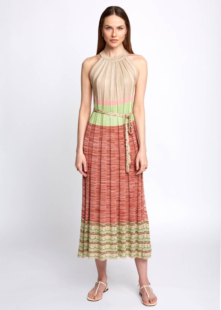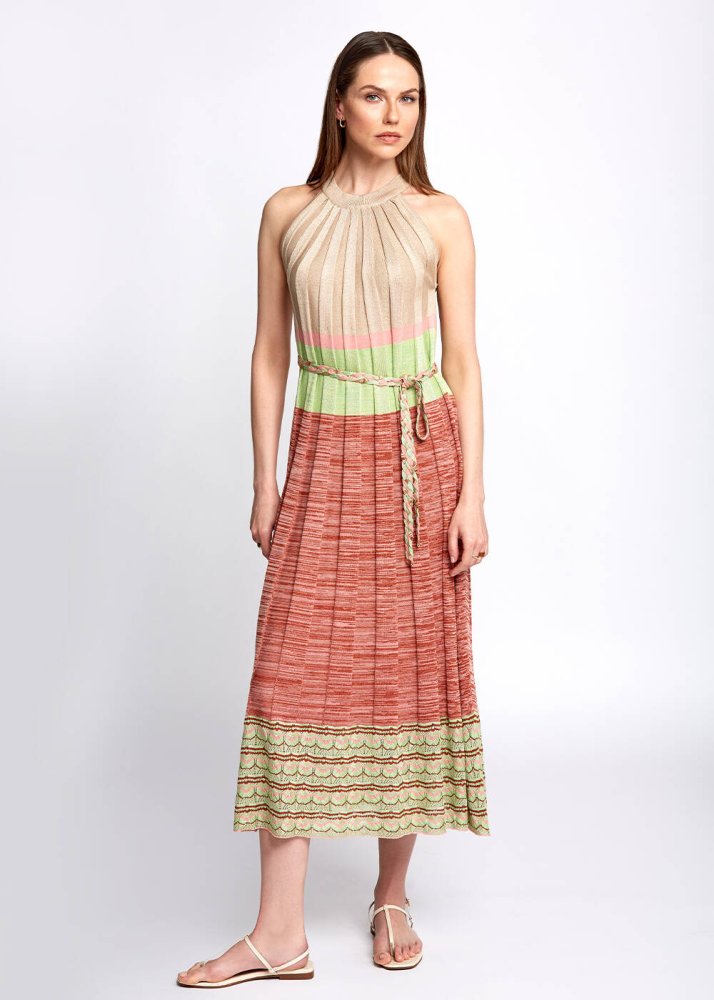 Halter Neck Pointelle Hem Detail Midi Knit Dress