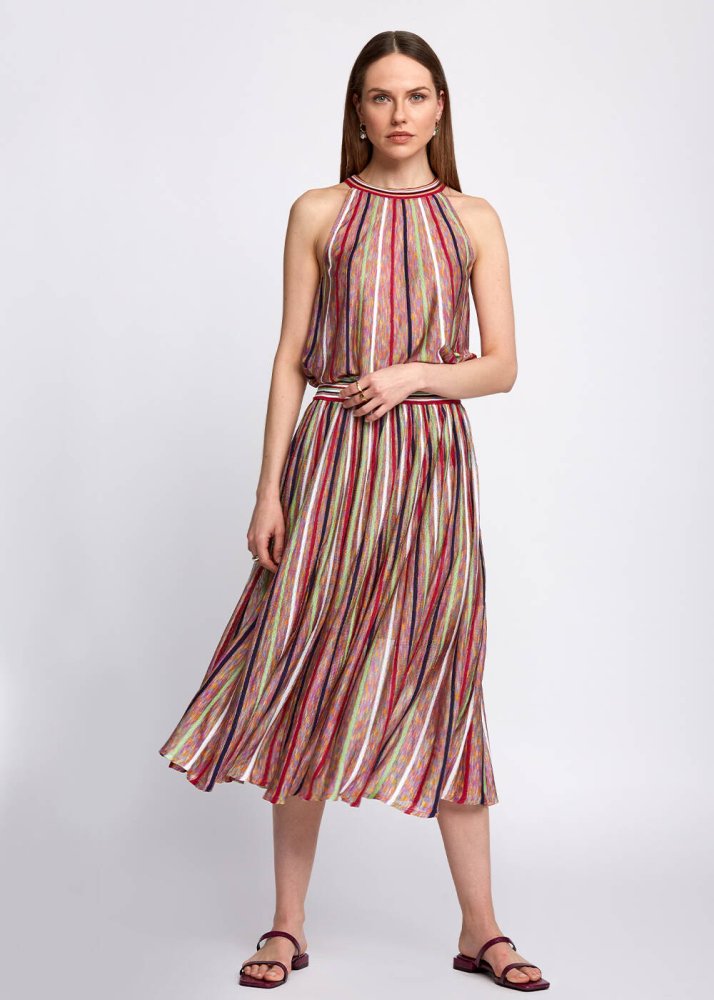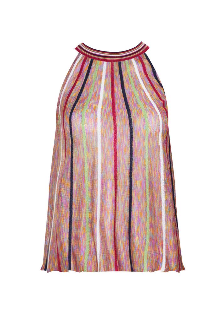 Halter Neck Striped Coral Knit Top