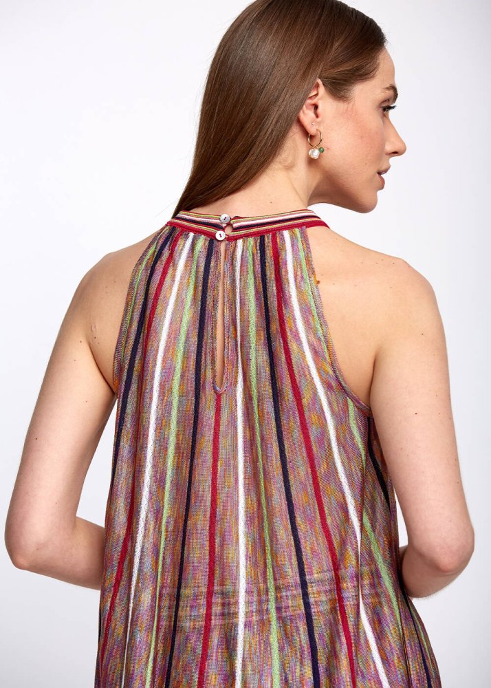 Halter Yaka Çizgi Desenli Çok Renkli Triko Bluz