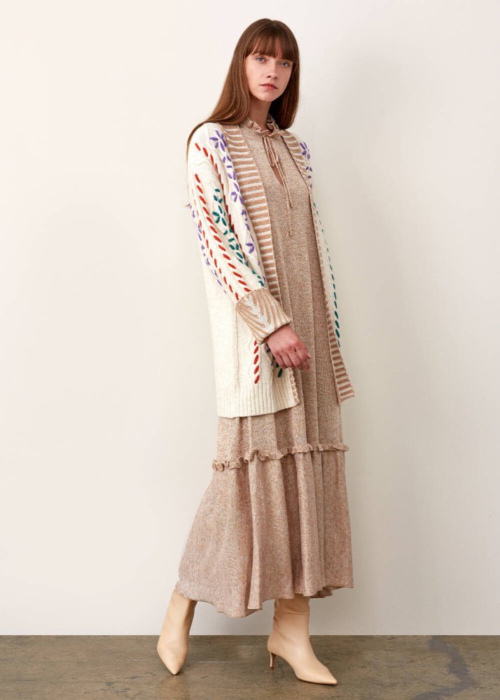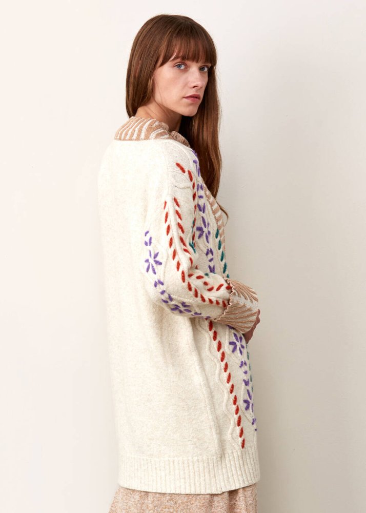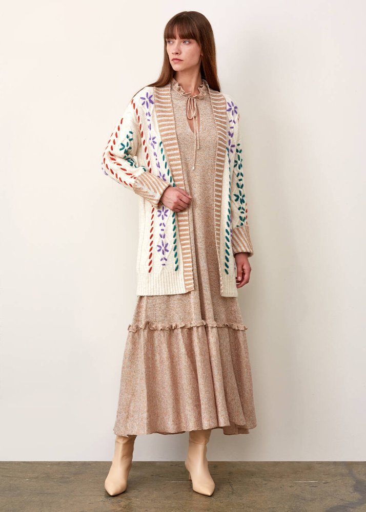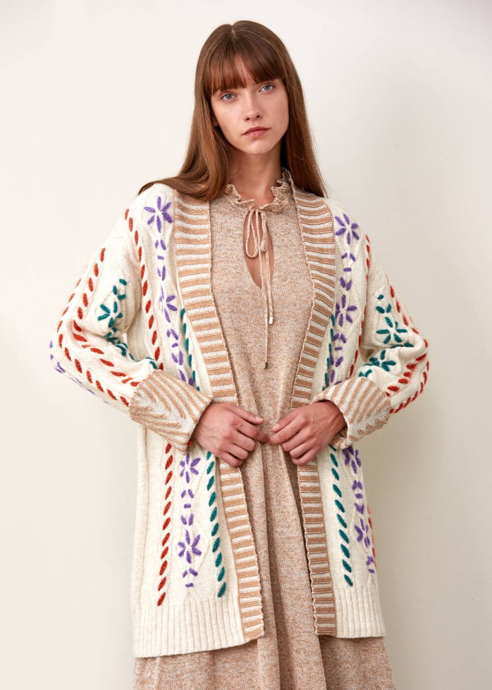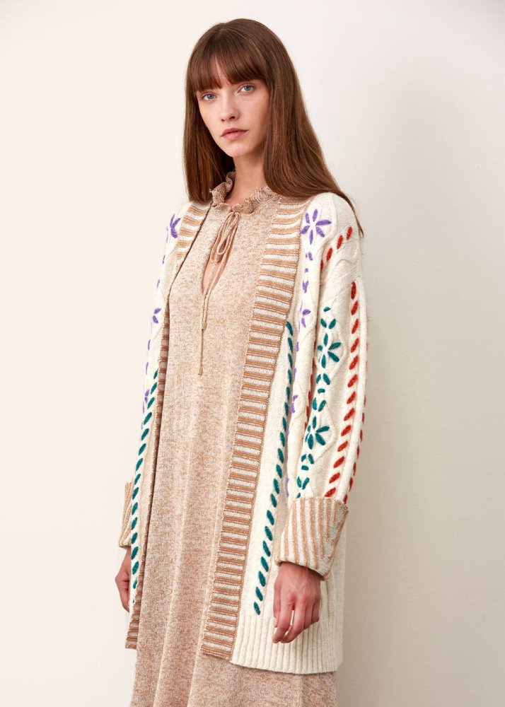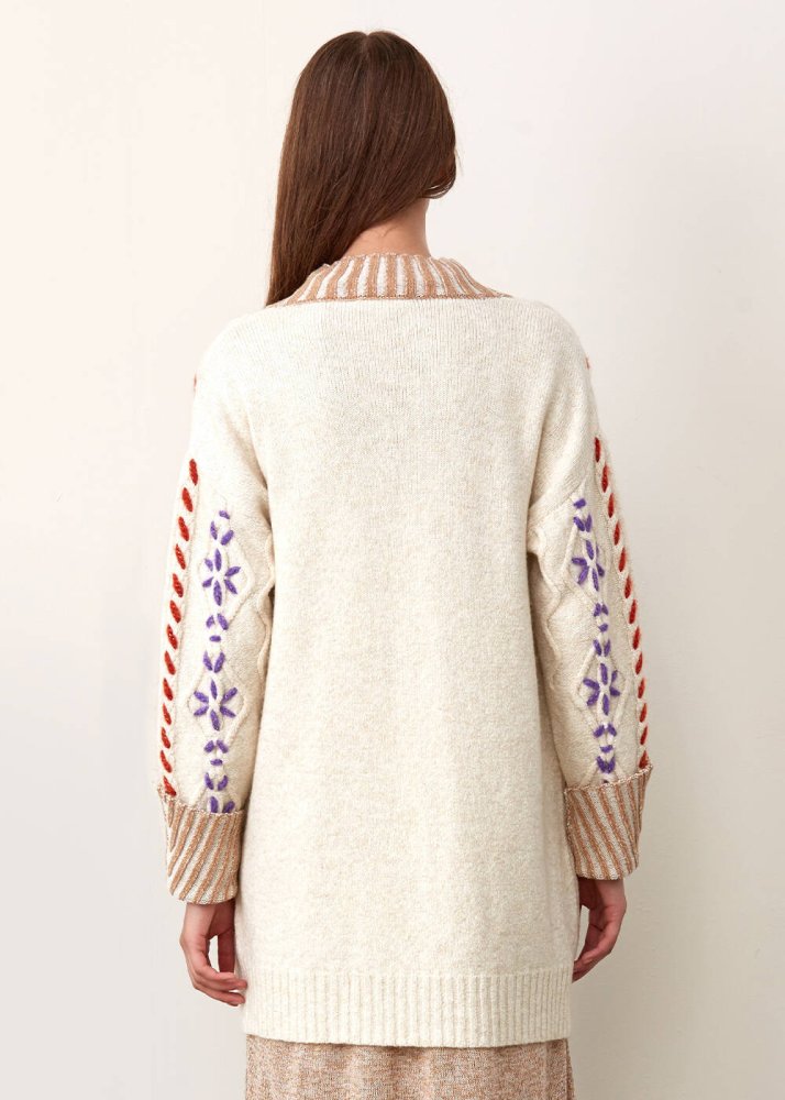 Hand Embroıdered Beıge Wool Knıt Cardıgan