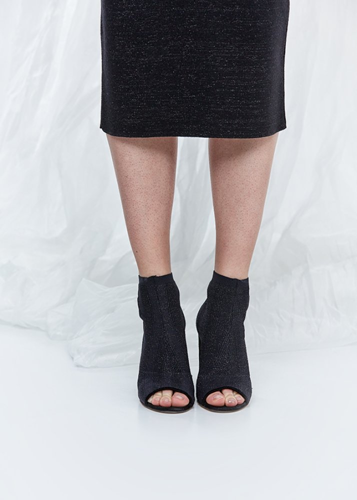 High Heels Black Knit Bootie