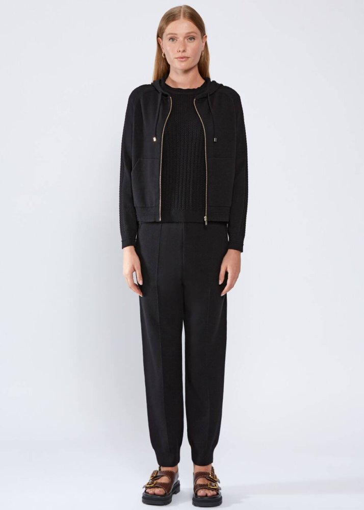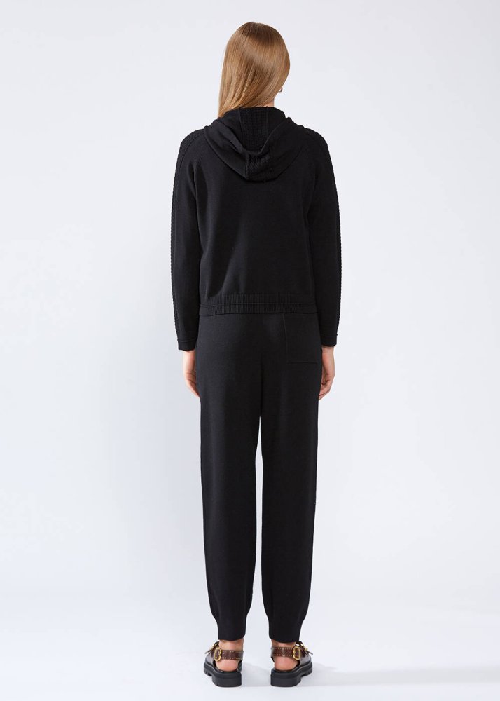 HOODED BLACK KNIT CARDIGAN