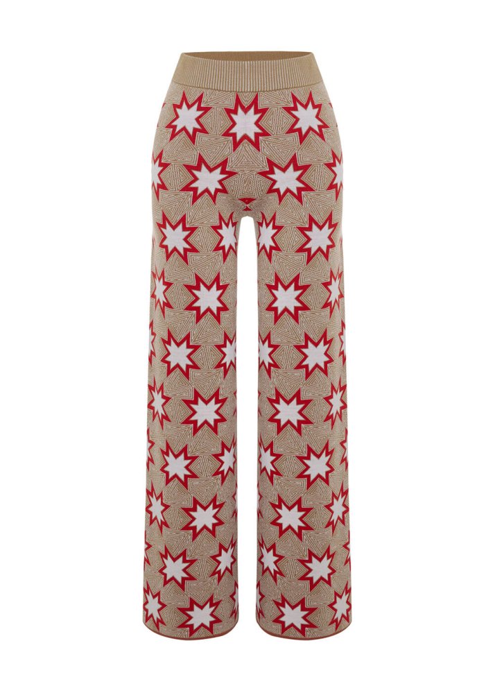 ICONIC APRÈS SKI STAR EMBROIDERED KNIT PANT CAMEL