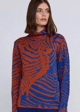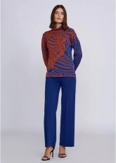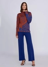 Intarsia Jacquard Detail Cooper Blue Knit Top