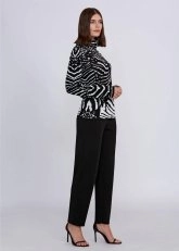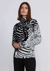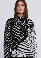İntarsia Jakar Desenli Siyah Beyaz Triko