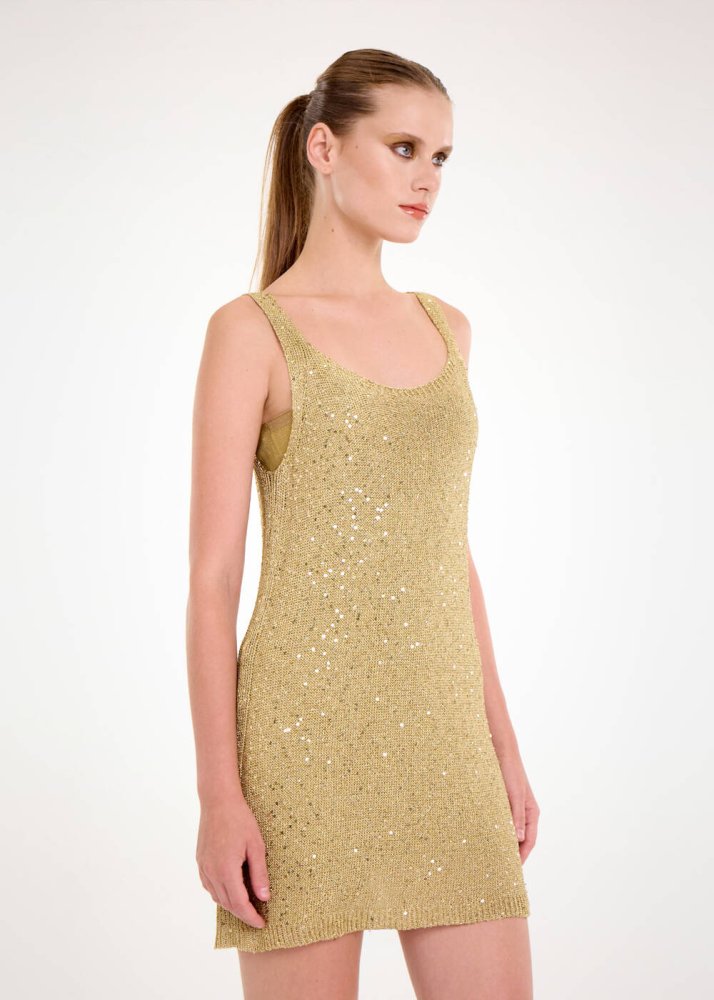 Işıltılı Gold Renk Payetli Triko Elbise