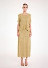 Geniş yakalı dökümlü tasarımı ile çağdaş Knitss stilini ışıltılı feminen tarzla buluşturan simli altın rengi örgü üstü keşfedin. Özgür ruhu, zarif tercihleri ve ayrıcalıklı stili ile her ortamda fark yaratan Knitss kadınları için üretilen parıltılı altın örgü üst, takımı olan simli etekle birlikte parti kombinleri için kullanışlı ve çok şık bir parçadır. Tek olarak da giyim dolabınızdaki birçok etek veya pantolonla kolayca kombinlenir.