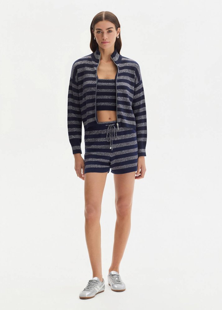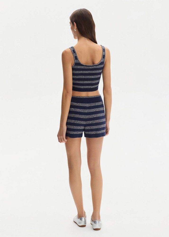 Işıltılı Lacivert Crop Triko Üst