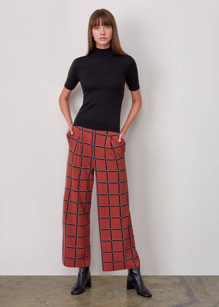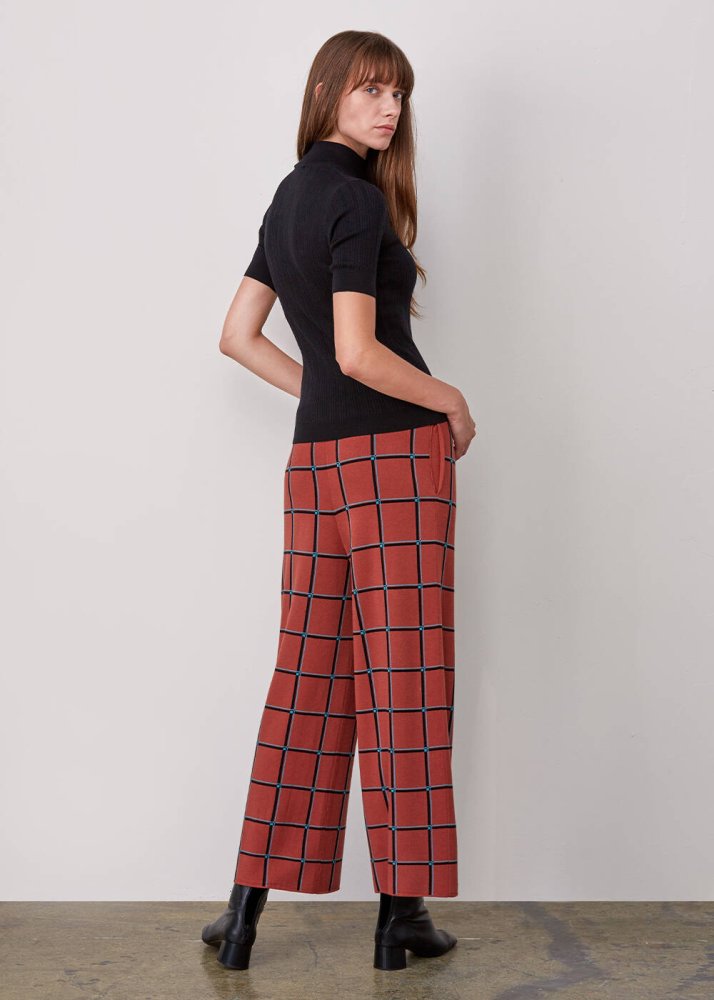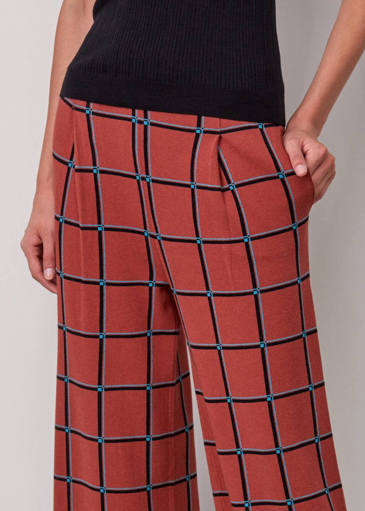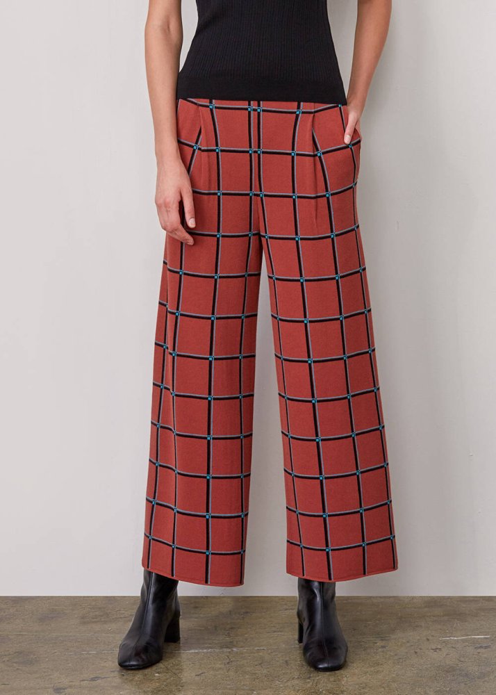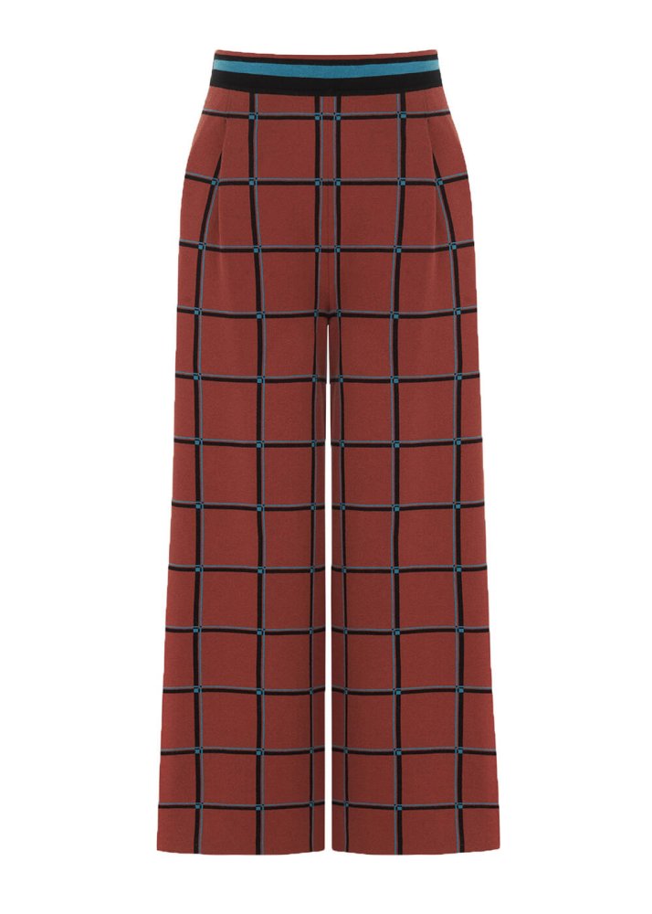 İtalyan İplik Kare Desenli Triko Pantolon