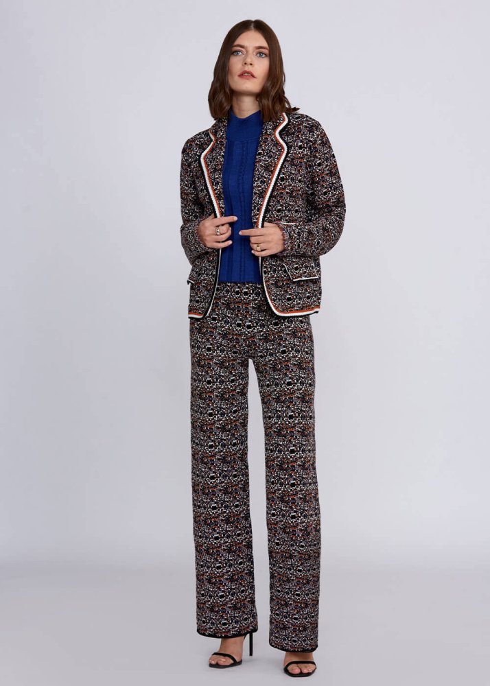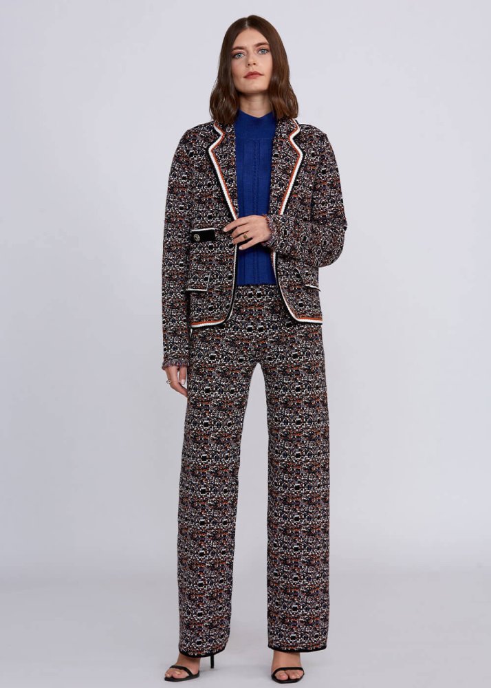 Jacquard Detailed Jeweled Button Knit Jacket