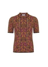 Jacquard Pattern Multicolor Short Sleeve Knit Top