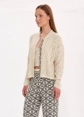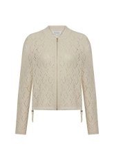 Zarif jakar desen işçiliği ile fark yaratan bej rengi fermuarlı yazlık triko ceket, geri dönüştürülmüş sertifikalı İtalyan ipliklerinden üretildi. Rahat kalıbı, çağdaş stili ve trikoya özgü zarif jakar örgü işçiliği ile konforu ön planda tutan bir şıklık sunan bej triko ceketi, günlük ve ofis kıyafetlerinizle zahmetsizce kombinleyebilirsiniz.