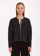 Siyah yazlık triko ceket, Knitss’in çağdaş dokunuşu ile bambaşka bir stil vadediyor. Jakar deseni ve rahat kalıbı ile dikkat çeken fermuarlı siyah triko ceket, günün her anına uygun kolay kombinlenebilir tasarımı ile özgürlüğüne ve rahatına önem veren kadınlara hitap ediyor. Geri dönüştürülmüş sürdürülebilir İtalyan ipliklerinden üretilen bu yazlık triko ceket, uzun yıllar yazlık gardırobunuzun favorilerinden olmaya aday.