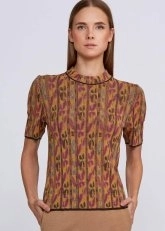 Dik yakalı triko üst, jakar deseni ile hem business hem de hafta sonu kombinlerinizin favorileri arasında yer alacak. Kısa kollu triko üst modeli, özel İtalyan ipliklerinden üretilmiştir. Koleksiyonda yer alan diğer parçalarla kolaylıkla kombinleyebileceğiniz kadın triko üst modeli ile stilinize Knitss ayrıcalığı katın.