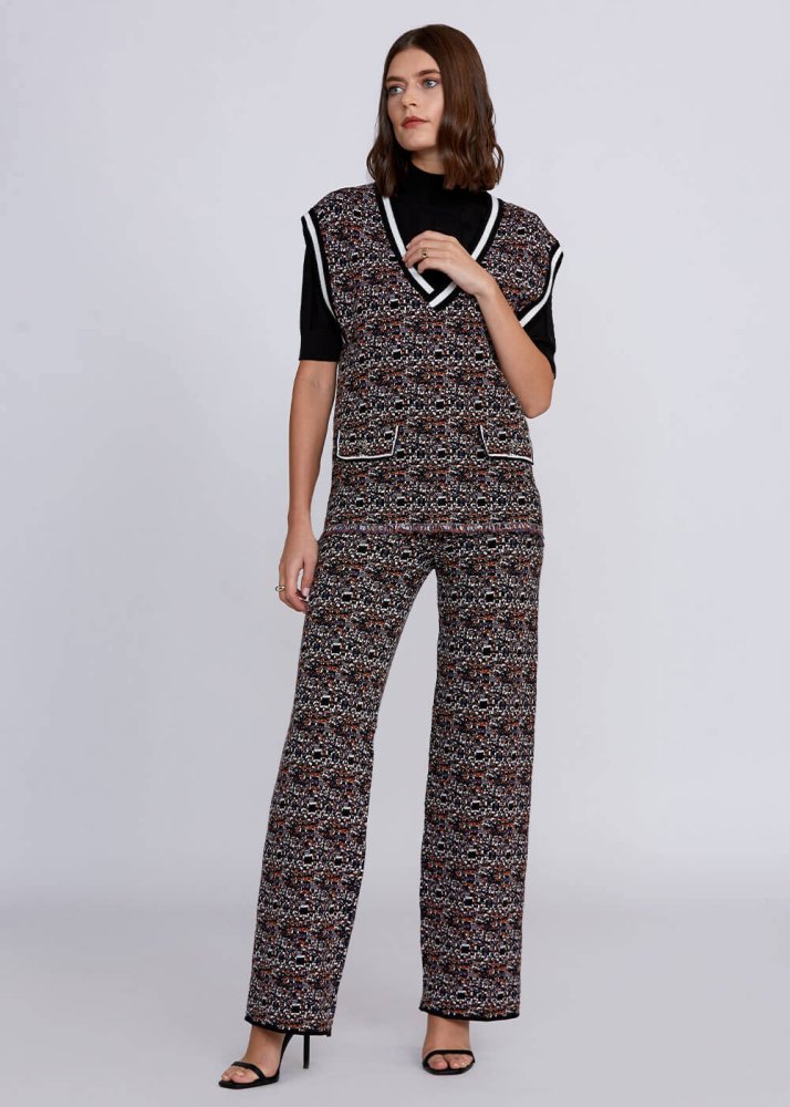 Jakar Desenli Taşlı Düğmeli Triko Yelek