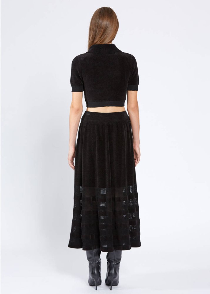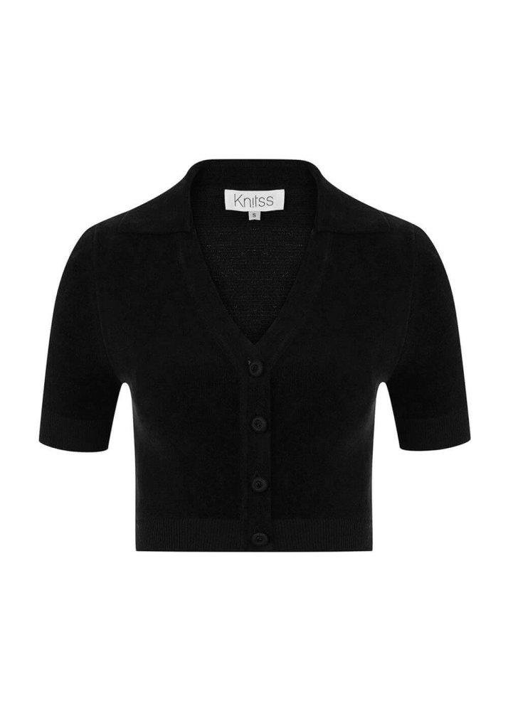 JEWEL BUTTON DETAILED BLACK CROP KNIT TOP