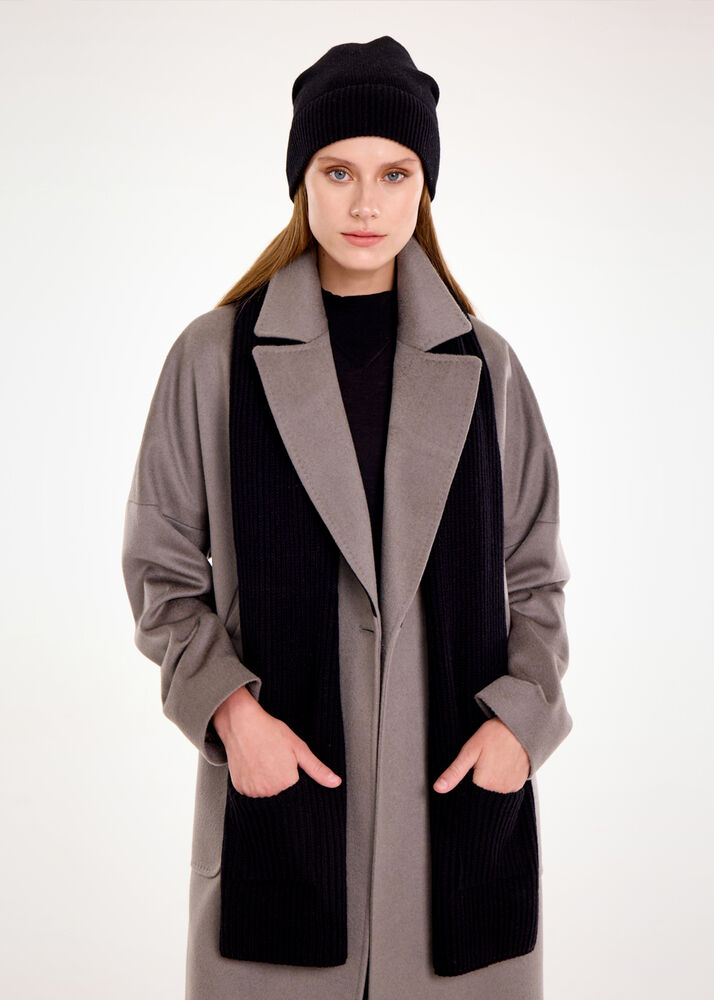 Essential Cep Detaylı Siyah Kaşmir Atkı