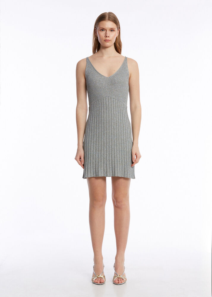 Fitil Örgü Gri Mini Triko Elbise