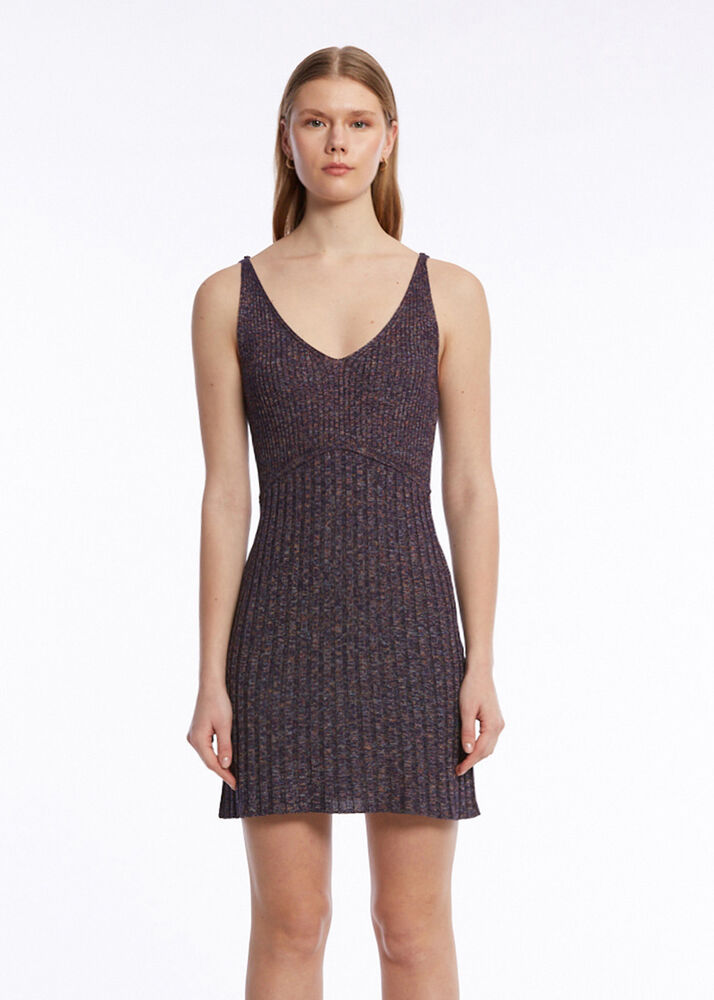 Fitil Örgü Mor Mini Triko Elbise
