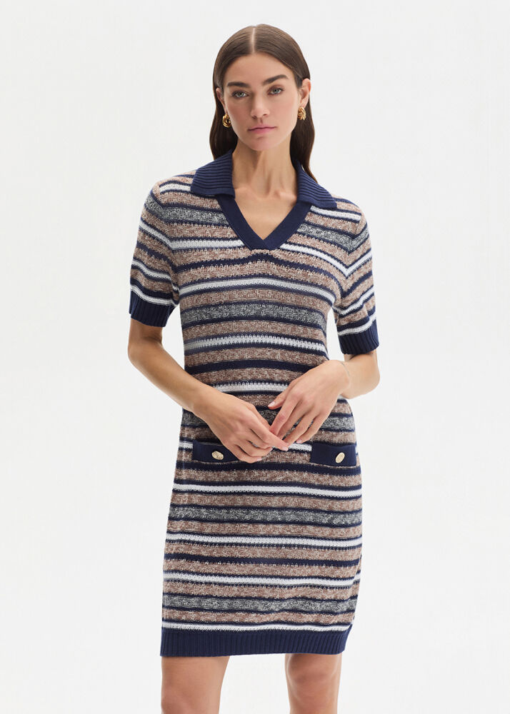 Polo Yaka Lacivert Triko Elbise