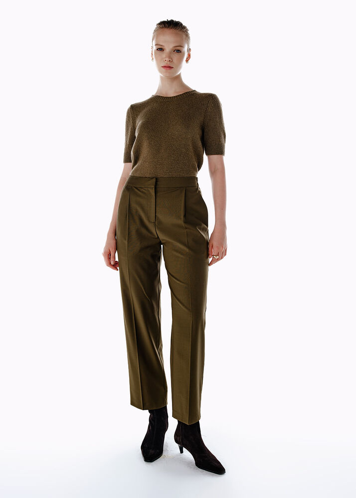 Pile Detaylı Çizgili Yün Pantolon Lacivert