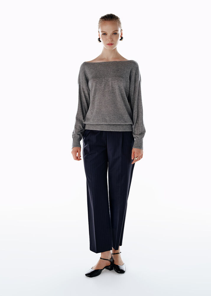 Pile Detaylı Çizgili Yün Pantolon Gri