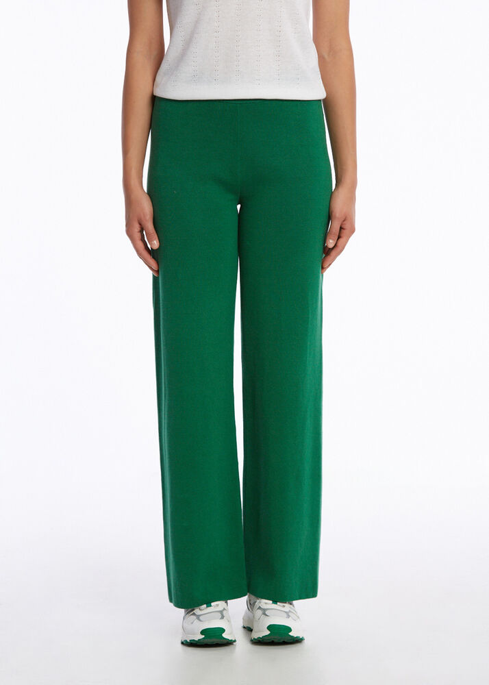 Organik Pamuk Keten Karışımlı Yeşil Triko Pantolon