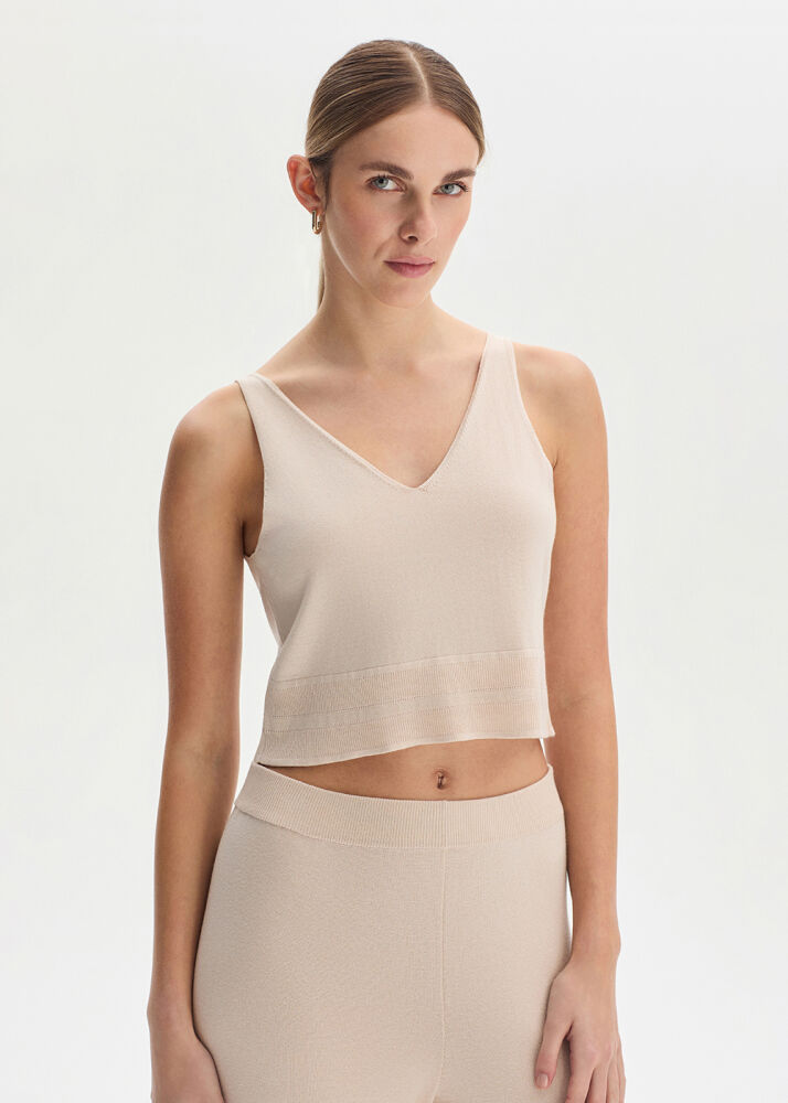 Bej Crop Triko Üst