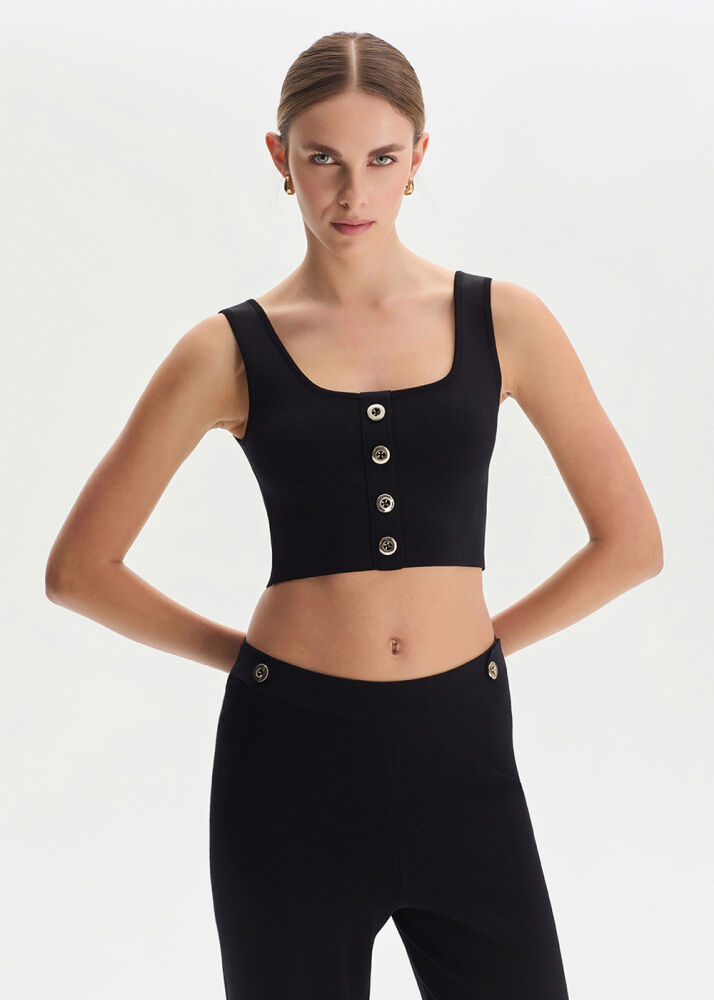 Siyah Crop Triko Üst
