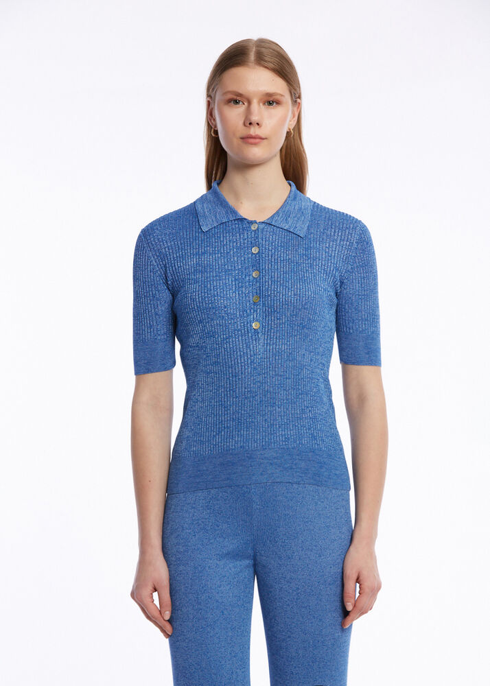 Düğme Kapamalı Polo Yaka Mavi Triko Üst