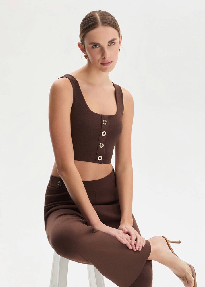 Kahve tonunun sıcak ve dengeli etkisini taşıyan Crop Triko Üst, yumuşak dokulu triko yapısıyla gün boyu konforlu bir kullanım sunar. Ön yüzündeki düğme detayları tasarıma zarif bir karakter kazandırırken kısa formu modern ve feminen bir siluet oluşturur. Ekru ve krem tonlarıyla birleştiğinde doğal ve romantik bir stil yaratır.