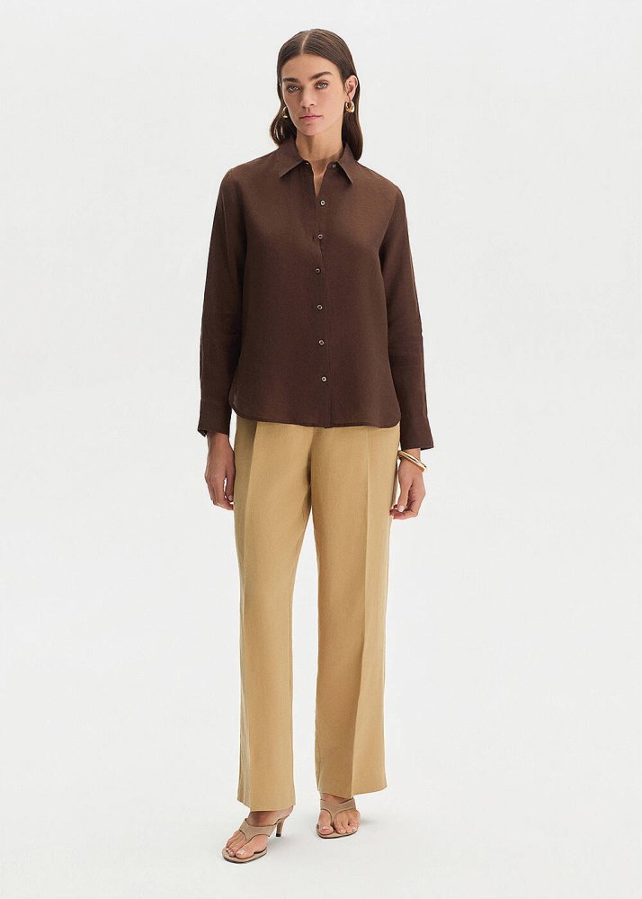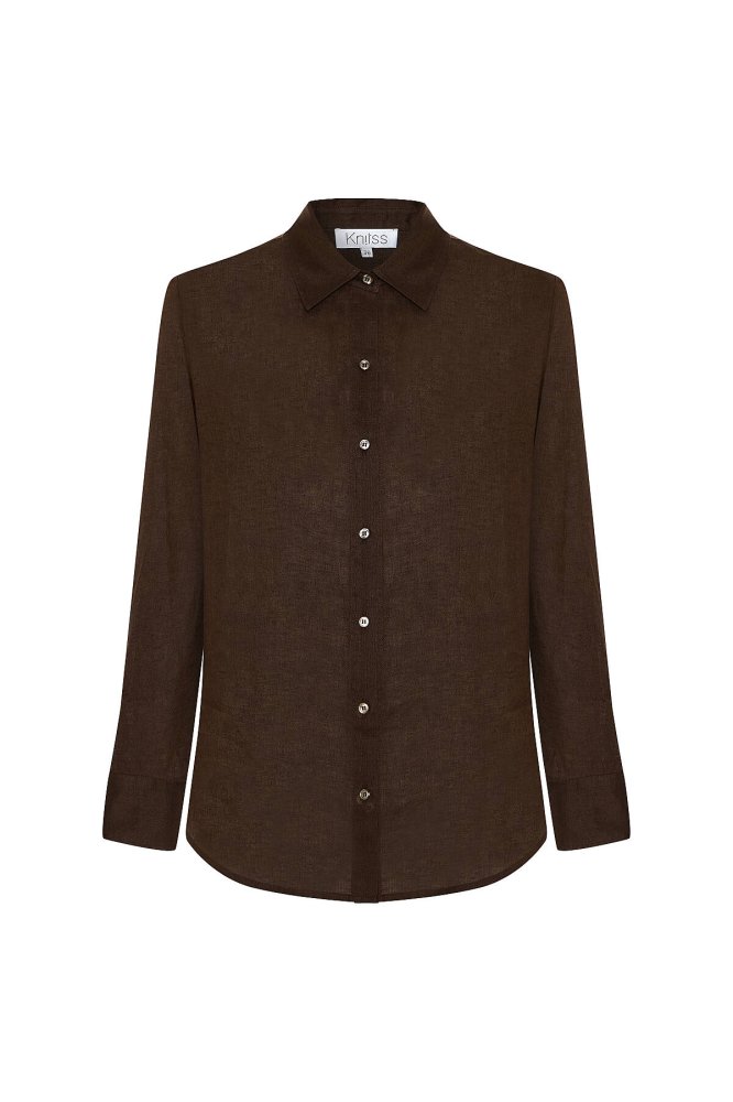 Kahve Regular Fıt Keten Gömlek