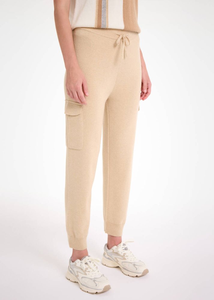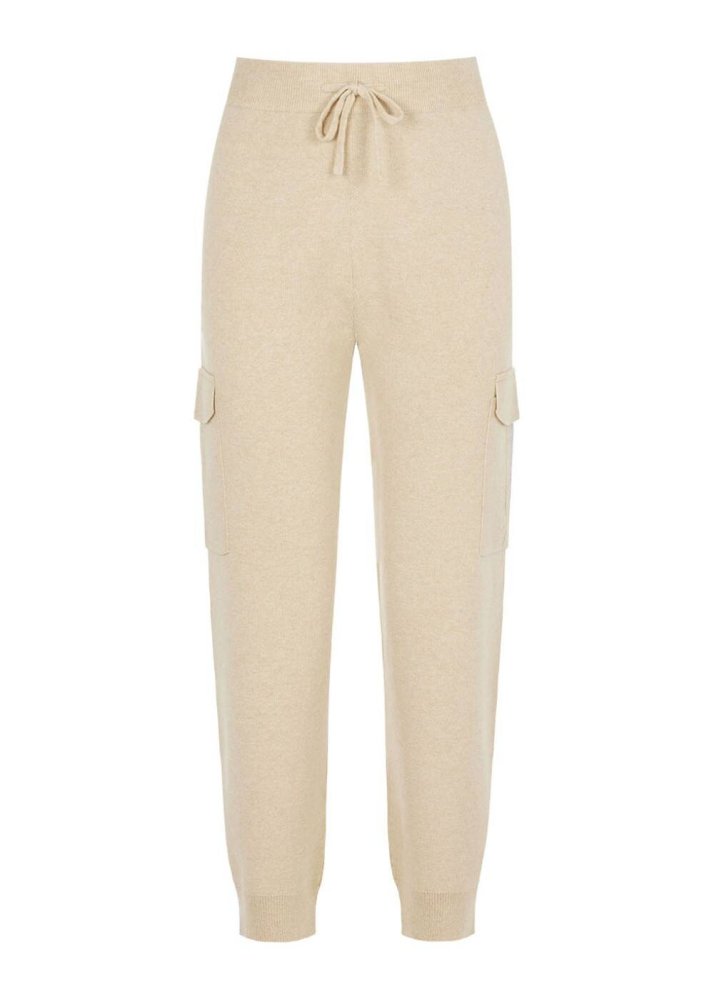 Kaşmir Karışımlı Bej Triko Kargo Pantolon