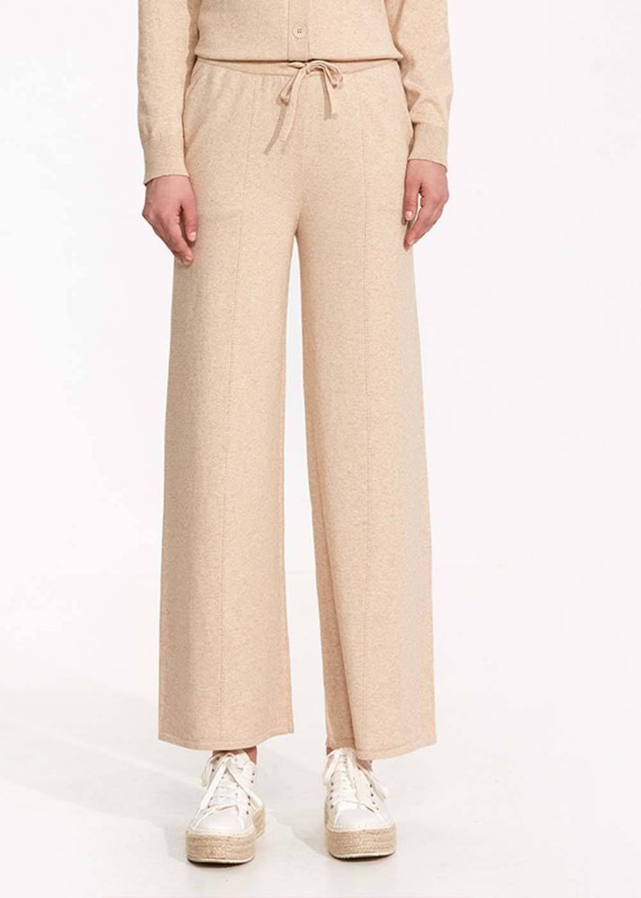 Kaşmir Karışımlı Bej Triko Pantolon