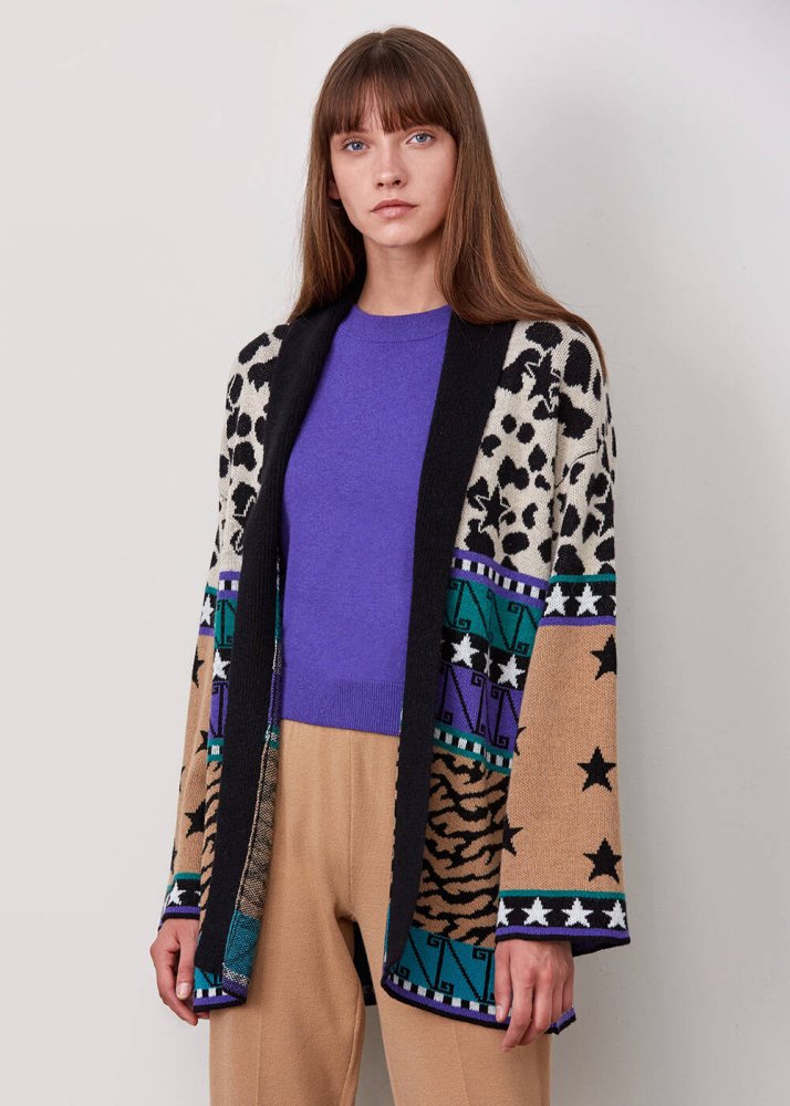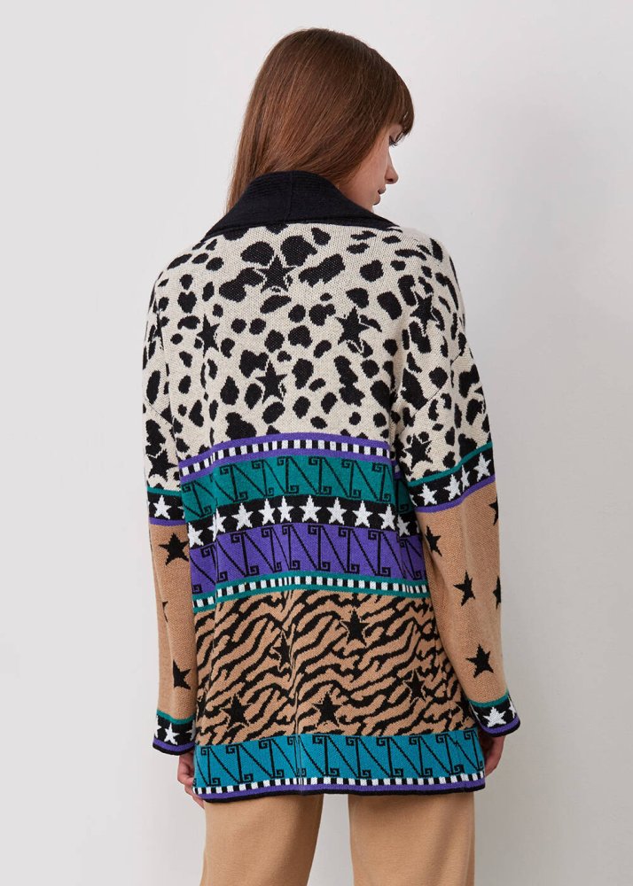 Kaşmir Karışımlı Desenli Çok Renkli Triko Hırka