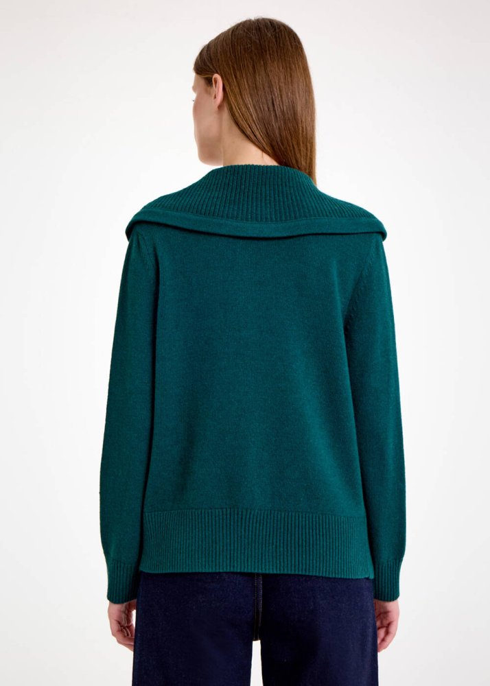 Kaşmir Karışımlı Geniş Yaka Yeşil Triko