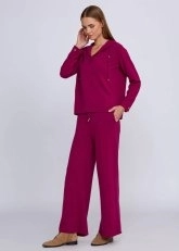 Canlı pembe rengi ile loungewear kombinlerinize enerji katacak triko, içerdiği kaşmir karışımı sayesinde yumuşacık; rahat kalıbıyla konforlu bir giyim deneyimi sunar. Yanlardan yırtmaç detaylı kapüşonlu kadın triko modelini, koleksiyonun Mix&Match özelliği ile diğer parçaları ile kolay kombinleyebilirsiniz.