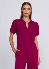 Canlı pembe rengi ile kombinlerinize enerji katacak triko üst, polo yaka tasarımı, yumuşak ve nefes alan yapısıyla şıklık ve konforu bir arada sunar. Kaşmir karışımlı triko üst modeli, LENZING™️ ECOVERO™️ markalı viskon ve Global Recycled Standard sertifikalı geri dönüştürülmüş elyaflardan örülmüştür.