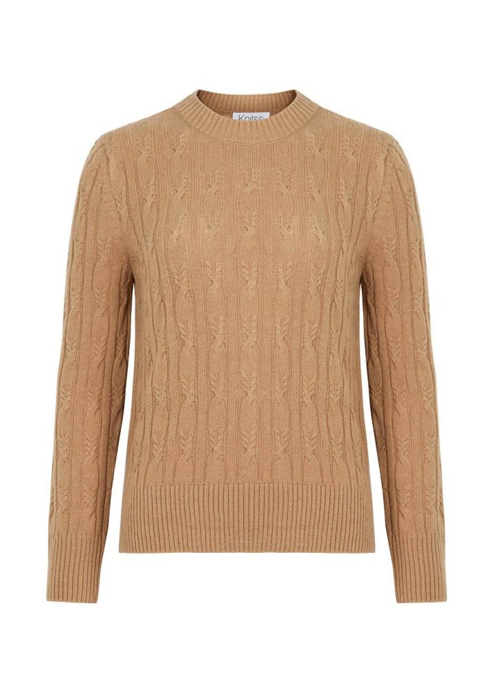 Kaşmir Karışımlı Saç Örgü Camel Triko