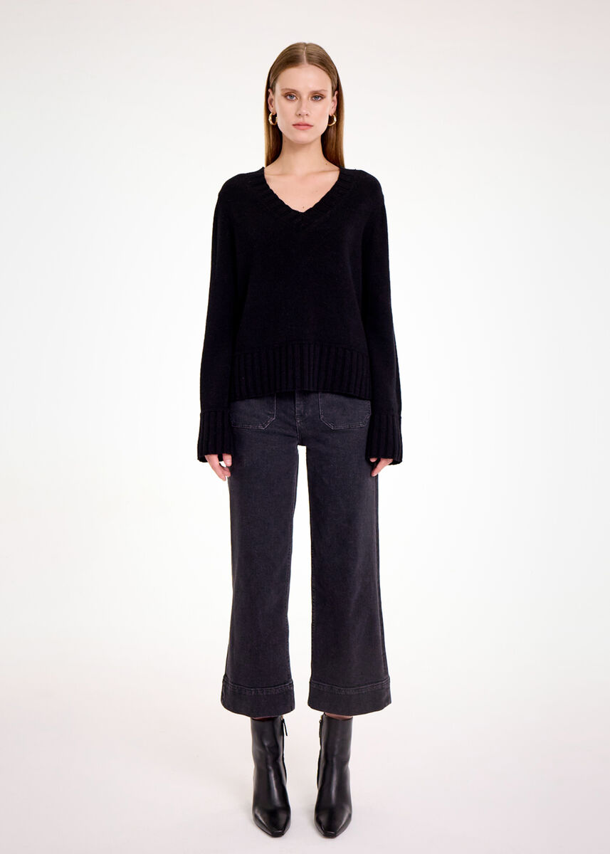 Kaşmir Karışımlı V Yaka Siyah Triko